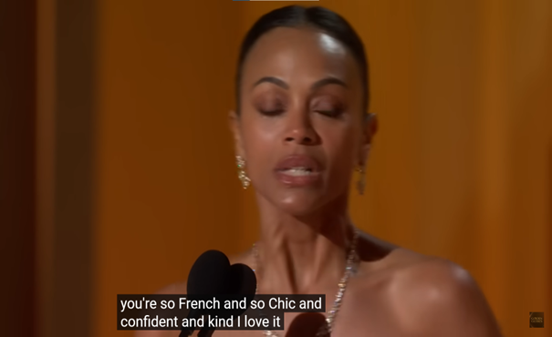 Et comme pour illustrer toutes ces critiques, l’actrice du film, Zoe Saldana, s’est lancée dans un discours pathétique après la réception de son prix aux Golden Globes : « Monsieur Audiard (…) je vous admire (…) vous êtes tellement chic et français. ». Quand une jeune femme Noire cire les pompes d’un vieil homme blanc.